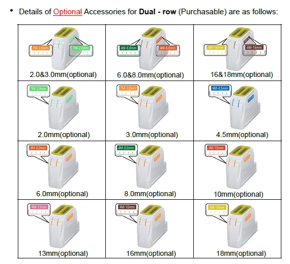 4Mhz,4.5mm,6.0mm,8.0mm,10mm,13mm,16mm,18mm / 7Mhz,3.0mm,2.0mm |